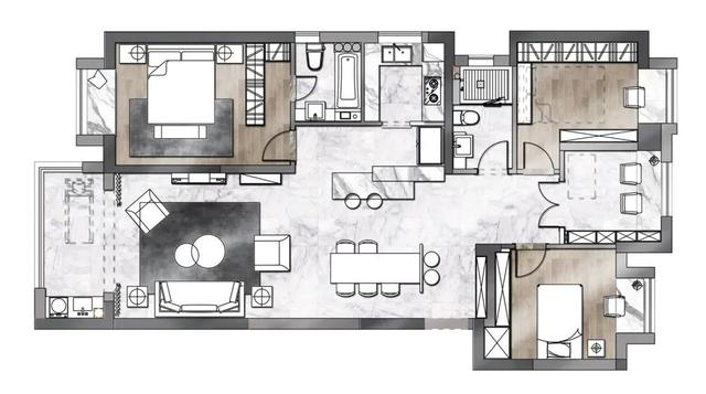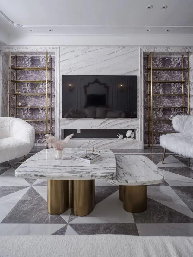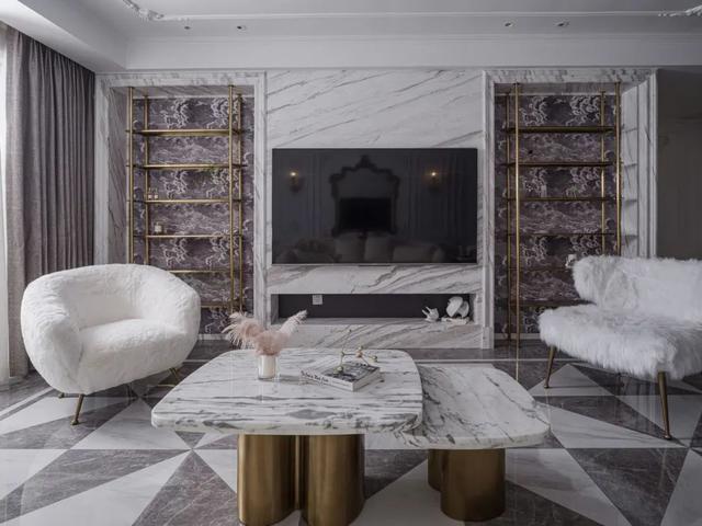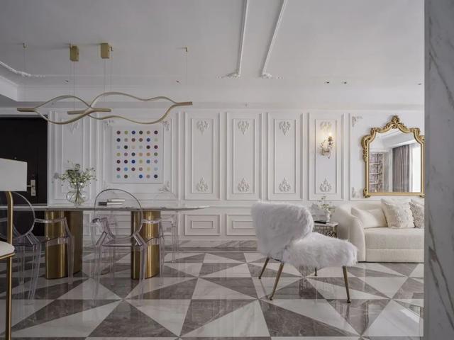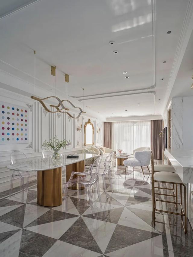 开放式客餐厅,让空间视线更为宽广,现代与古典结合,石材与金属元素搭配尽显奢华,