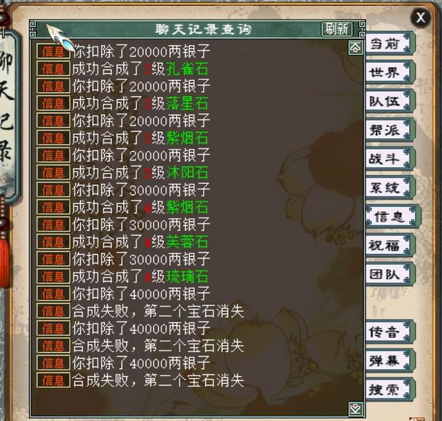 哈喽,大家好,我是一心,前两天一心用攒了一周的师门贡献换了一车宝石,打算大干一场,但是结果却让一心心凉半截,一车宝石碎成了一块四级宝石,相信不少小伙伴有和一心同样的遭遇吧,不过还有一部分人生非常幸运的,我们来看今天这几位玩家合宝石的经历,足够让人分分钟咬牙了。究竟如何呢?我们一起去看看吧。