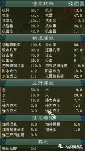双忽视防御几率和程度110,命中率88,致命几率80,狂暴几率97,连击率75,无属性伤害92.9。