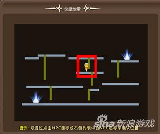 2、然后,小伙伴们注意看小编角色所在的位置,由红色方框标出,那里就是勇士部落隐藏地图的入口位置,然后按向下键就能进入了:
