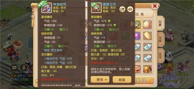 先来看下这个月宫号的衣服,号上有两件不错的衣服,第一件是13段90级单力加45的罗汉金钟衣服。这件衣服不仅基础物防与气血加成很不错,而且还有罗汉金钟大特技,是一件非常不错的衣服。另一件是100级力耐双加69的男衣,属性加成确实不错,可惜没有任何特技。