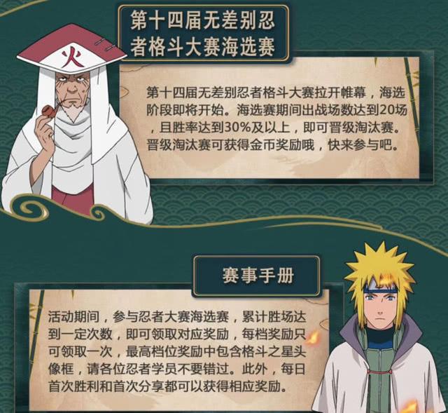 看到这里,各位小伙伴是不是已经在为自己存的金币不够多而发愁了?没关系,因为跟新忍者同时上架的还有无差别格斗大赛!这个活动可是非常不错的,不管你的账号怎么样,只要你手法足够好,大把金币等你拿!小编每次无差别都能弄个2000金币,这样一来忍战手鞠等于是白送,想想就很开心呢!
