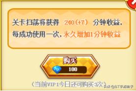 另外VIP0(即未充值)的玩家每天可以买3次,VIP等级越高,可购买的次数也就越多,最高每天可买15次,这对于经常缺经验和金币的玩家可以说是相当实用了。