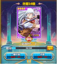 2、下面的能量条是满的情况下,可以点击许愿一次获得一个武将碎片,蓝色武将40能量一抽,紫色武将60能量一抽,橙色120能量一抽。也可以直接点击一键许愿将能量条抽空。