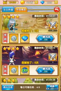 在战斗页面当中,右下角有着扫荡这个按钮,点击之后会出现了用钻石换收益的页面,在这里每天第一次可以用50颗钻石换取4个小时的收益,即经验和金币,在大家急缺经验和金币时在这用钻石换算是比较便捷的了,之后每成功购买一次增加一分钟的收益,钻石耗费也会一次增加50,所以说在日积月累的多次购买后,这个功能的收益会越来越高。