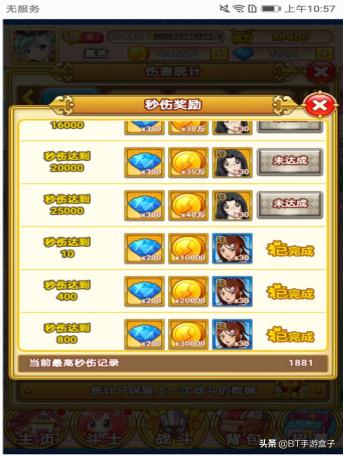 统计功能除了看输出之外,还有一个重要的功能就是可以领福利,在右下角的不起眼位置,有个点击奖励按钮,进入之后能看到不同水平的DPS可以获得不同等级的奖励,钻石、金币、武将碎片,三者都是好东西。达到要求的小伙伴一定要记得来领。