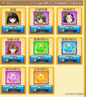 公会活动获得的个人贡献在这里可以换武将碎片和进阶石,拿来培养队伍是极好的。