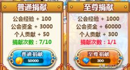 这里我们可以花费金币和钻石对公会进行资助建设。当然不是氪金大佬的话就不要捐钻石了,300一捐伤不起,钻石不多的话很快就会被耗尽。然后金币捐助尽量每天能把10次捐满,总共花费50w其实也不算多,拿到个人贡献去换材料才是王道。