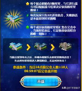 和其他公会打群架,每天18点-23点为开放时间,到时间点击开战按钮就会进入战斗界面。双方各占城池,玩家可以选择敌人的城池进行攻击,在进攻一次之前是无法看到敌人队伍的战力的,所以想赢也比较看脸。