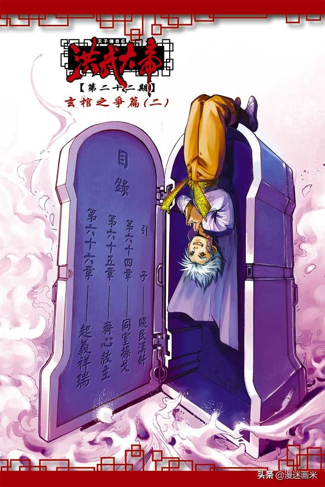 因为“如来神掌篇”可以说是非常的失败,再加上前五篇已经把能写的都写了,已经到了没有新意的窘境。所以编剧钟英伟将之前《天子传奇》系列的东西几乎全数舍弃了,意图以新格局、新气象来开创《天子传奇》的新局面,而《洪武大帝篇》初期也确实给了读者耳目一新的感觉。内容也是借鉴了金庸先生的《倚天屠龙记》。很值得一提的是这篇漫画首次推出“潮华版”,“潮华版”出现为香港漫画注入了新的概念和活力。后期几乎所有漫画公司都改成了“潮华版”,玉皇朝也将旧作翻新,推出“潮珍版”。(将传统包装书的约18.8cm×27.3cm,缩至约14.2cm×21.5cm;页数由30多页增至80多至100页。)