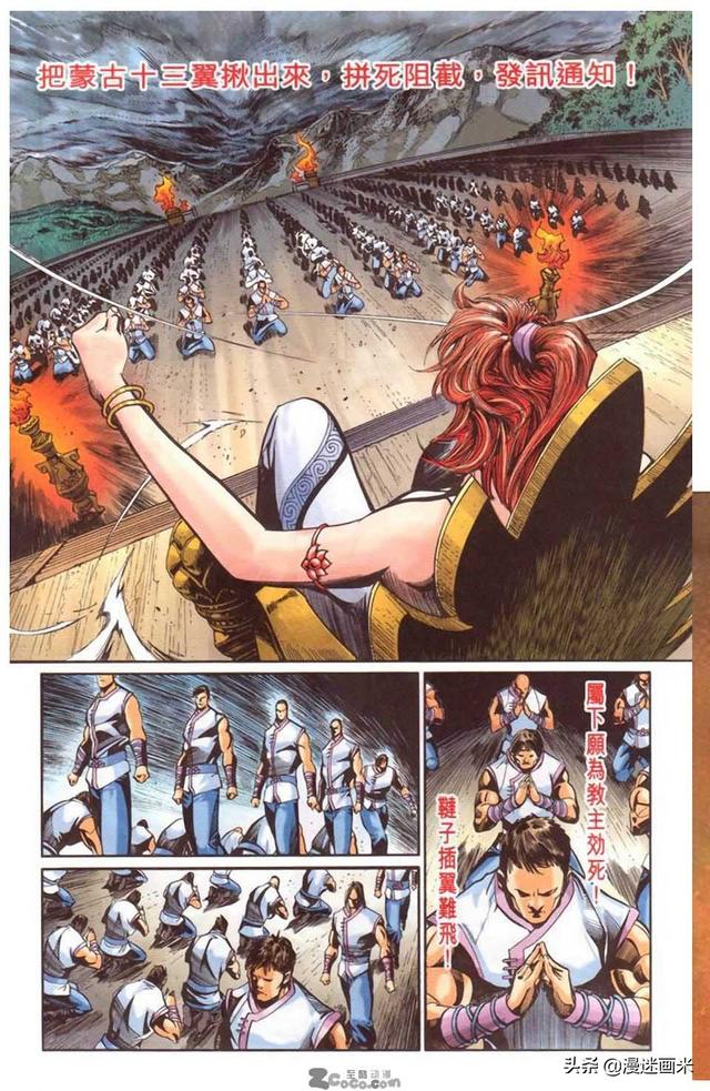 由于朱元璋受韩山童造成的伤患的困扰,应付实力并不是很强的丐帮十二生肖都很费劲,莫要说和实力更强的十三翼开打了。还好在白莲天女等人的帮助下,伤势逐渐缓解并再度和哲别相遇,此前已连败二次的他再一次击败了哲别,并要将其斩杀之时,神秘大鹰及时出现救了哲别,其背后的神秘人也强势登场,人称最强替补的他接连击败众多高手。至于白莲教主韩山童则又展开一次玄关争夺战,这次有日阳君加入,使得十三翼节节败退,而且只有毒王能勉强应对,情况十分危机,韩山童则认为十三翼已无法抵抗,轻敌之下被毒王札木合使用禁招重伤,不得不退回总坛,毒王札木合也暂时夺回玄馆,并结束了这场大战。「白莲大战篇」铺陈盛大,最终收尾却给读者雷声大,雨点小的感觉,因为没半个重要角色阵亡的缘故,珍惜创作的角色,固然是件可取的事,但没有角色的死就衬托不出战况的惨烈。