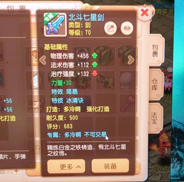 要知道打造装备出专属的概率是并不高,更不用说这把武器还带有简易特效与特技,即便是放眼整个三界都是难得一见的“宝贝”。