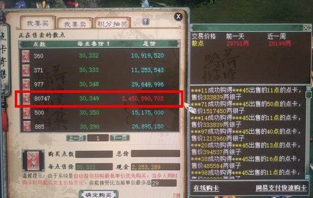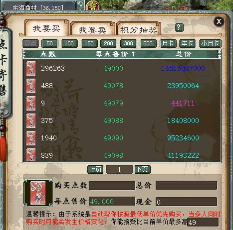 但是,如果抛开几率不说,二哥是并不建议一次性寄售大量点卡的,因为点卡的价格基本不会有太多的浮动,但DHB却是会随着开服的时间越久不断的降低购买力,囤积在手中也会变得愈加贬值。通货膨胀的道理,相信大家肯定都是都懂的,因此如若不是有特别大量的DHB需求,大家还是不要跟这位老铁去学。