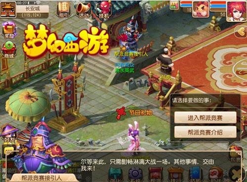 帮派竞赛,顾名思义,必须是要求玩家具备帮派成员的身份才能参赛,每逢周一周三报名,当天15:00前出现明天的对战表格,周二周四21:00-22:00准时开打!玩家们也无需害怕碰到过强或者过弱的对手,因为除了首届帮派竞赛的随机分配之外,之后的每一届大赛都将通过帮派规模和历史战绩两大要素进行匹配,每四周的帮战为一轮计算历史成绩!好了,既然一切明了,那么我们马上就去长安城中的帮派竞赛接引人处开始报名咯!