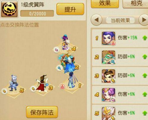 以1级天覆阵和虎翼阵为例,当你带满助战,你为了12%伤害而牺牲12%速度;而你如果选择虎翼阵,无负面影响即可获得高额的15%伤害加成。
