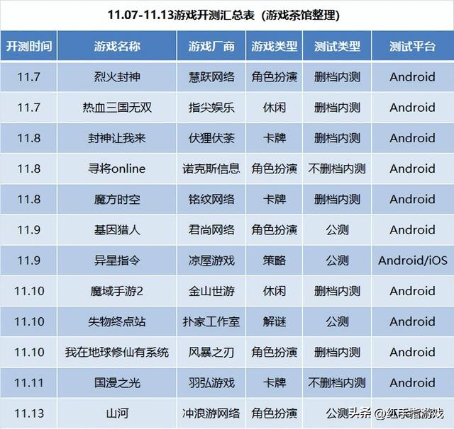 最后附上本周新游公测表(该图转载自游戏茶馆):