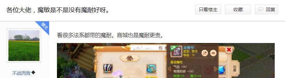 不知道大家更喜欢敏魔装备还是耐魔装备呢?楼主这件敏魔双加的衣服有必要更换吗?欢迎在评论区留言分享自己的观点。