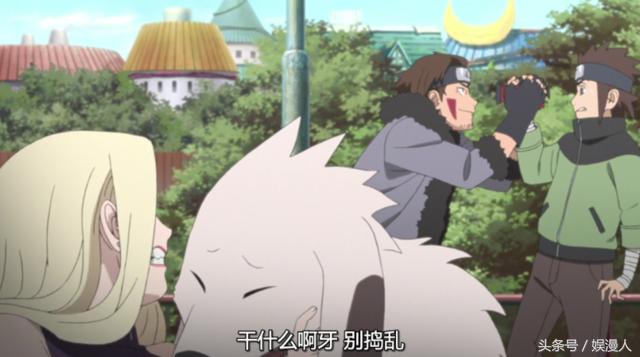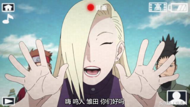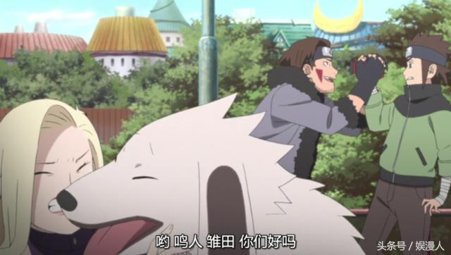 其中井野说:“嗨,鸣人、雏田,你们好吗?”,站在井野后面的鹿丸就调侃,这算什么祝福语啊,连丁次都忍不住说了一句,他们肯定很好啊。