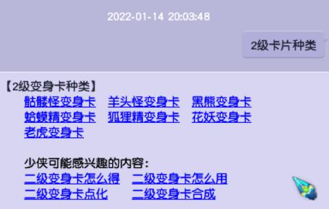 二级卡片中,骷髅怪是最低级的夜战卡,狐狸精是最低级的感知卡。这两种主要在于获得途径较少,一般副本给的都是4级卡了。老虎卡是强力,给物理变一下也行。
