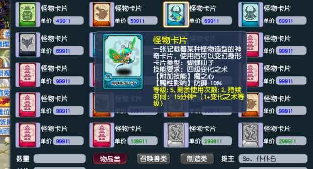 五级卡片中,蝴蝶卡是法系最常用的卡了,也是摊位上每逢活动最畅销的卡。其余几个都没啥用,最大的用途是留着合蛟龙卡。