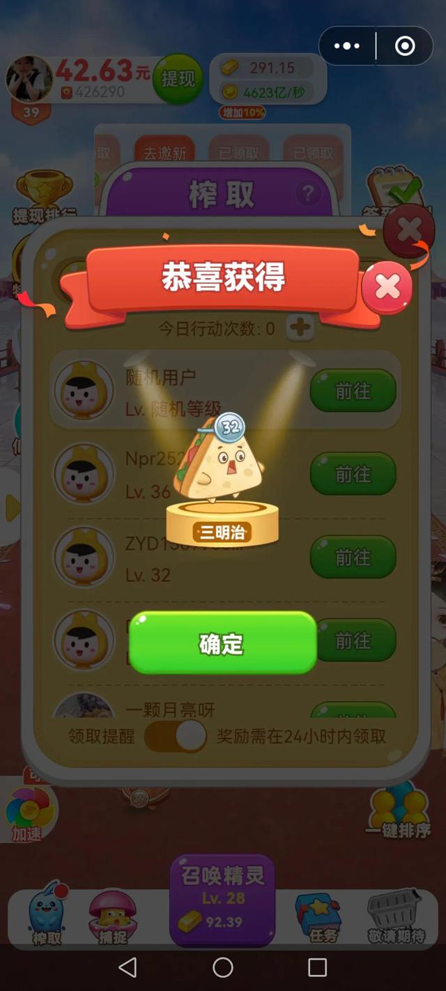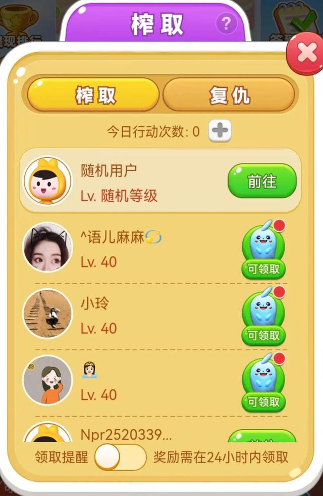 因为榨取的设计是随机用户与复仇两个栏目,随机用户围绕你的级别上下一个级别,随机显示用户,让你榨取。所以我39级可以有机会榨取40级精灵。