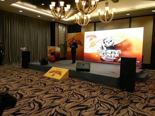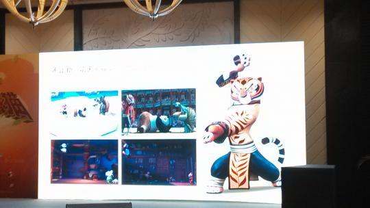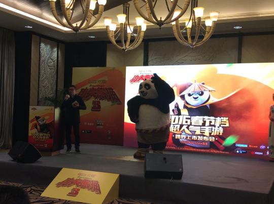 《功夫熊猫3》手游正式启动,在场嘉宾和阿宝一起按下游戏项目启动球,游戏将于1月8日正式上线!