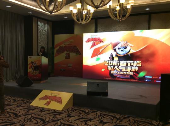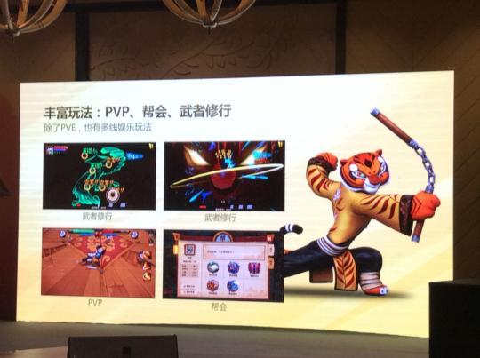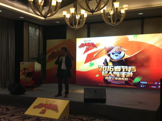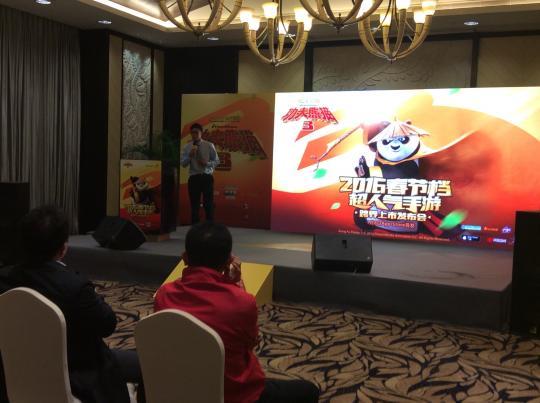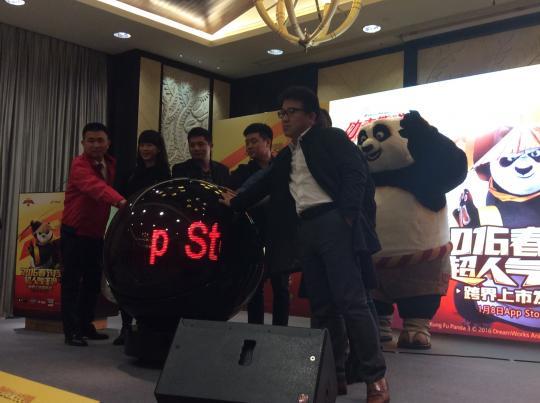 《功夫熊猫3》手游产品项目经理刘犀上台发言,宣布游戏1月8日在苹果商店独家首发。