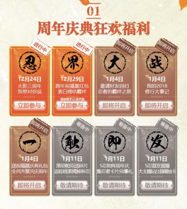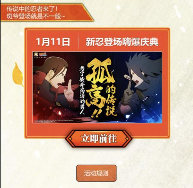 之前一直在猜测斑爷的上架时间,有说4号的,也有说11号的,曾经我最早的推测时间是11-13号,因为12号是无差别决赛,后来发现没有首秀的环节,那基本上可以提前1天上架,毕竟以往的高招忍者大多都是周五上架,现在,三周年的专题页也证实了这个时间。