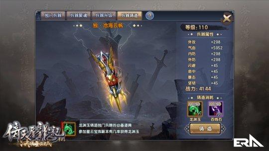 今日上线的另一个重要核心玩法是独门兵器系统,玩法分为四个部分:兵器铸造、兵器升级、兵器聚魂以及兵器外观。其中升级和聚魂与装备的玩法类似,就是使用材料给兵器进行升级、升阶;而铸造则是类似千机坊中的锻造,由玩家收集材料自己进行打造。