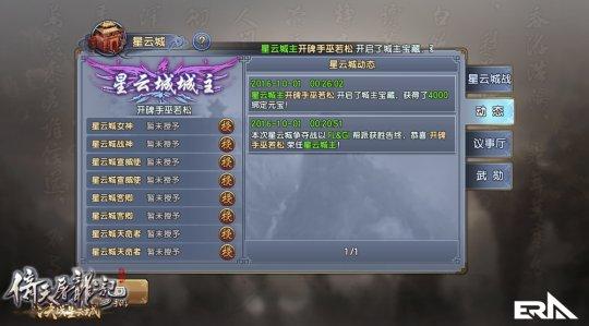 城战中获胜帮派的帮主将成为星云城主,享有无上权限。授予他人专属称号、设定城市商店税率、发放“城主之赏”、海量福利等等,另有珍宝无数的星云宝库,静待各位豪侠前来开启!