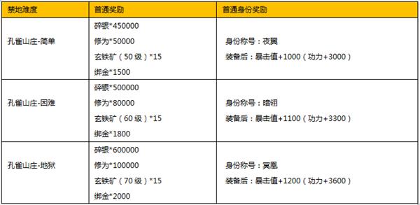 1.玩家在等级达到20级后,即可参与“禁地”玩法。本活动获奖名单以游戏内“孔雀山庄”首杀界面显示为准。