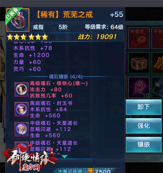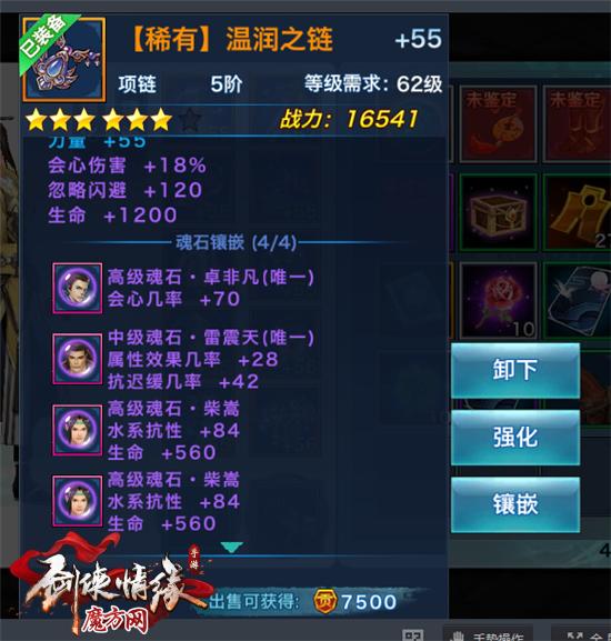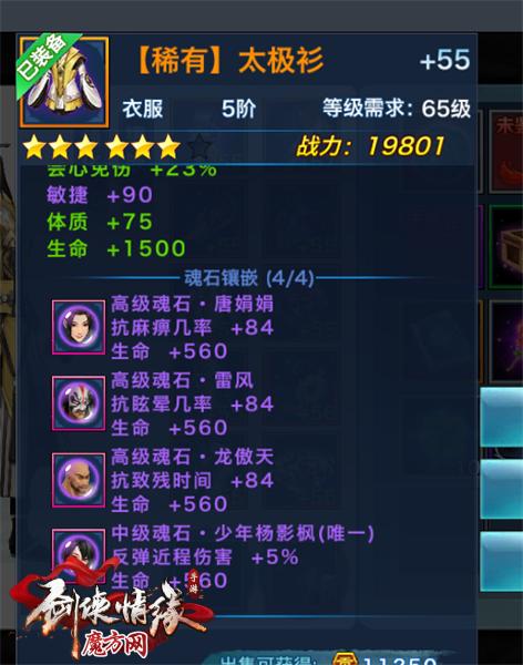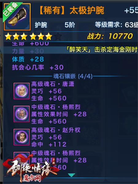 魂石基本成型,除了换下戒指孟知秋魂石 武器换个杨英魂石 项链换个黄玉英 鞋子换个道一真人 衣服换个清晓师太 魂石就成了