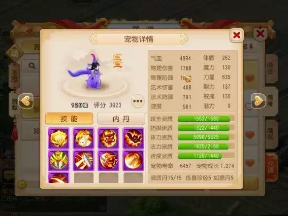 这只忘川童子也染过色,因其爆炸的体力资质和较低的速度资质,其主人将它打造成了一只龟速血宠。关键是它认证以后有12个技能,各种提升生存能力的高级兽决它都可以有!从面板上看,它的气血值竟高达8136,真的是非常优秀啊。