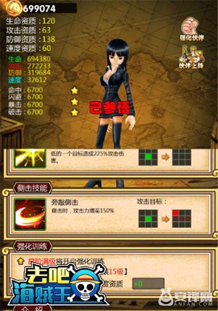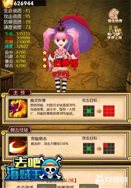 作为女儿国的女帝不仅有着超强战力,在美貌上更是世界第一。在《去吧海贼王》中,美艳的女帝拥有着海贼中最强大的控制能力,只要进入战斗状态即会迷倒敌方,使对手都进入石化状态持续两回合。相信在女帝强大的控制下,拥有两回合优先行动的你将横扫一切对手,称霸海域。
