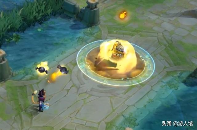 然后就是沈梦溪的大招了,这是一个大范围高伤害的超强输出技能,毕竟扔出去的炸弹就要大很多啊,大家也可以看到这个炸弹的真面目,这个炸弹还长了2只眼睛,不过都是用xx表示的,看来是被沈梦溪的各种旋转奔跑给弄晕了啊。
