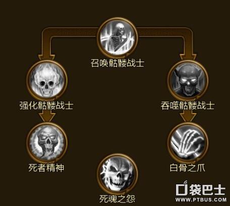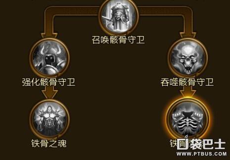 召唤一个1级骸骨守卫,其可同时伤害面前3个横向的敌人,主角魔攻将等值附加到召唤兽,自身保留一半。