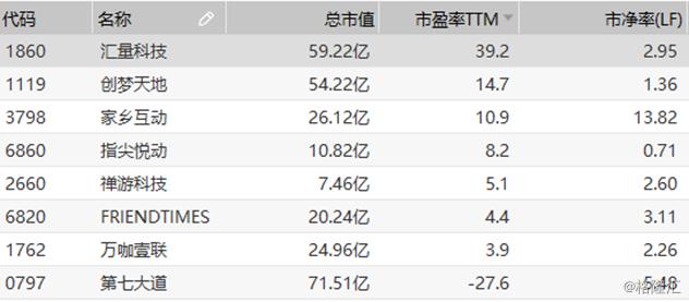 截止目前上市游戏企业的市盈率表现不一,最高的汇量科技达到了近40倍,除却处在亏损阶段的第七大道,其余新上市的游戏股估值则多在3-15倍的水平。