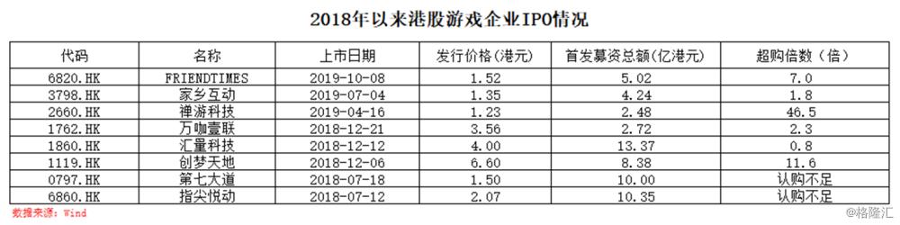 自2018年以来,国内多家游戏企业在香港上市,根据其上市表现来看,大部分企业均在上市之初获得超额认购,反映港股资本对游戏股上市的追捧。