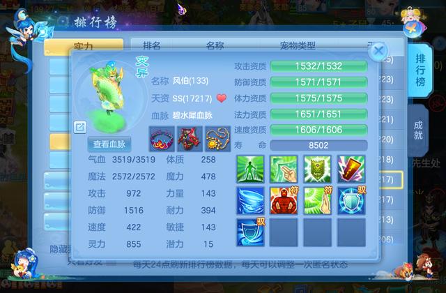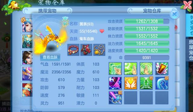 首先是暴力法,也是大家在日常玩法中用的最多的,走纯暴力路线,法力资质和成长越高,输出的伤害就更给力。在兽诀方面:高级法术连击+高级法术暴击+高级灵蕴是核心组合,如果最多拥有五个技能格子,就再搭配高级法术波动+高级保命,护符搭配输出法术+审判,六技能加一个高级震慑。要最大化这些兽诀的价值,那么成长至少应该在紫心,法力资质在1580以上,体防资质在1400以上。驭兽方面选择奇袭+破法。