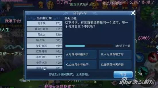 倩女幽魂手游科举应试要求:答对20题(应该可以吧)、答题时间13秒(应该足够吧)、不准交头接耳,这满屏幕的弹幕,臣妾做不到啊!