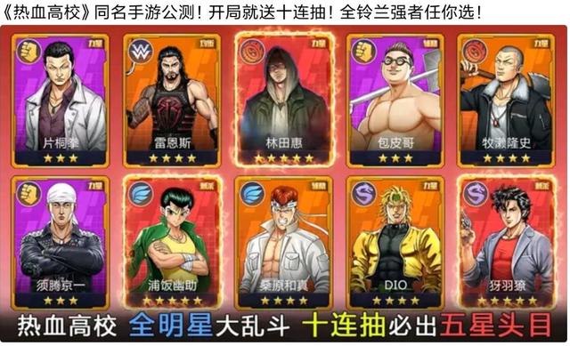 不过仔细看看,好像除了dio,这个游戏广告里还出现了别的动漫作品的角色,比如浦饭幽助和桑原和真,还有犽羽獠,这几位都并非是《热血高校》的角色,前面两位是《幽游白书》的角色,后面这位是《城市猎人》的主人公。