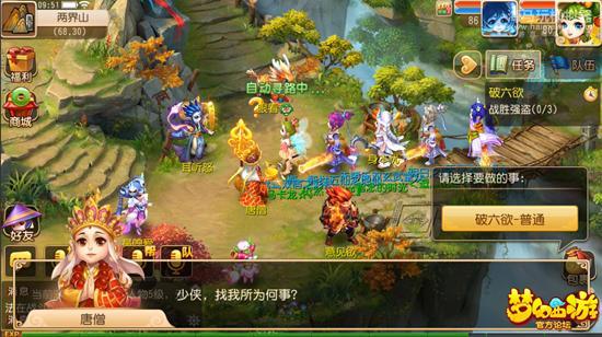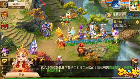 在看着唐僧给的提示把周边的强盗打死3个就可以了。但是如果杀鼻嗅爱、眼看喜、身本忧打完会给宝箱哦。(P.S宝箱是我哒)如果没有打这3个可能只会获得经验和银币奖励哦。