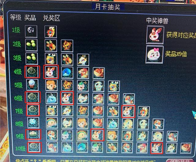 上面的这个界面就是月卡礼券的抽奖界面,上面的这位玩家现在已经达到了最高等级的10级,他对应的中奖神兽是超级神兔,而且这位玩家的运气比较好,直接开出来了五个超级神兔,但是这五个超级神兔对应的那行的物品奖励特别的差,对应了四个摄妖香和一个包子,这些东西根本不值钱。