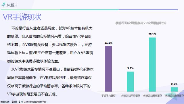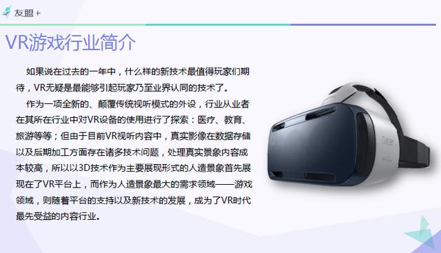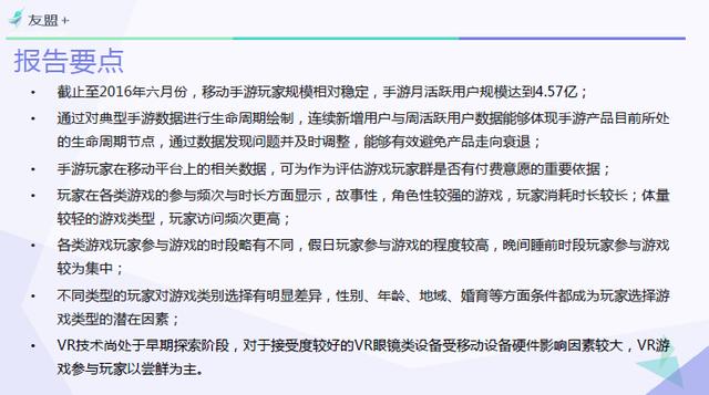 近日,第三方全域大数据服务提供商【友盟+】发布了《2016H1手游行业报告》,报告对整个手游行业市场做了分析,其中,VR作为手游行业的新秀,技术尚处于探索阶段,VR游戏玩家主要以尝鲜为主,未来将有极大发展空间