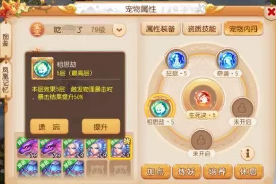 1、高级内丹 如果是隐攻宠,则建议选择生死决,平民可以选择隐匿击。打完隐身无疑会是降低宠物的攻击力,但是却提高了宠物的生存能力,而在生死决几率提高物伤则可以把隐身的缺陷抵销。 生死决效果:有几率当回合降低自身30%物理防御,提高一定物理伤害。 如果是非隐攻宠,则建议选择舍身击,平民则选择碎甲刃。毕竟生存能力不高,正常的增加伤害效果。 舍身击效果:增加物理攻击的伤害结果,提升效果和力量点数有关。 2、低级内丹 低级内丹这里推荐必备迅敏、连环、奇袭、矫健。其而狂怒,阴伤这样的内丹虽然有额外的攻击加成,但是负作用也很大,基本很难站得住脚。当然如果是隐攻宠最求一次性的爆发则可以一试。