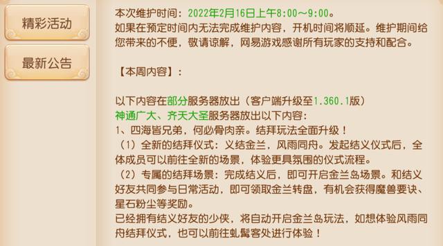 (1)全新的结拜仪式:义结金兰,风雨同舟。发起结义仪式后,全体成员可以前往全新的场景,体验更具氛围的仪式流程。