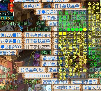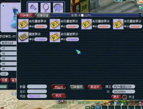 任何一个有一定年岁的游戏,如果是按服务器还分流玩家的,那么出现鬼区也是正常之时。因为有鬼区肯定就有大红区,两者是相互对应的。对付鬼区也是有很多的办法,一些游戏干脆就直接分流,游戏玩家过少直接关闭。梦幻的策划采取的主要手法,就是直接合区。他们就是把几个同样人数很多的服务器,直接合并成一个,这样就能瞬间增加了玩家的数量。可是尽量合区从未停止,很多服务器还是避免不了变鬼。这次来看一个物价很怪异的鬼区,一本高级防御兽决,居然也要卖出了天价。