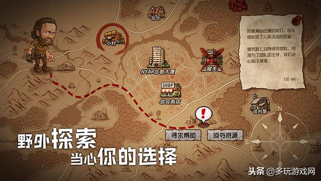 为了生存,玩家必须要收集弹药粮食、躲避尸潮,因此要不断的探索地图上的各个位置,残破的公路、未知的森林、被侵占的农场等等一切可能找到资源的地点,并救助困在各处的伙伴。