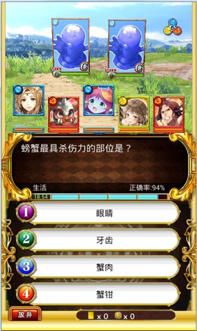 好吧,现在要带着妹子去做新手任务,各位中二的玩家这次扮演魔法师,用睿智之门(也就是卡牌)从异世界召唤精灵。召唤(也就是攻击)需要两个条件,第一是选择的问题属性要与你想要进行攻击的卡牌一致,第二个则是正确回答问题。等等,问题?尼玛难道这就是传说中的解谜?!不就是《疯狂猜图》和《天朝委员会》那种的百科问答么……