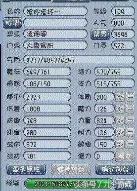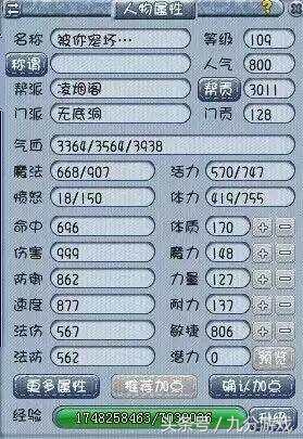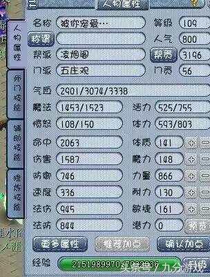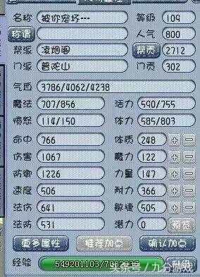 在杀星之前,给朋友们看一看人物修炼以及属性板面。